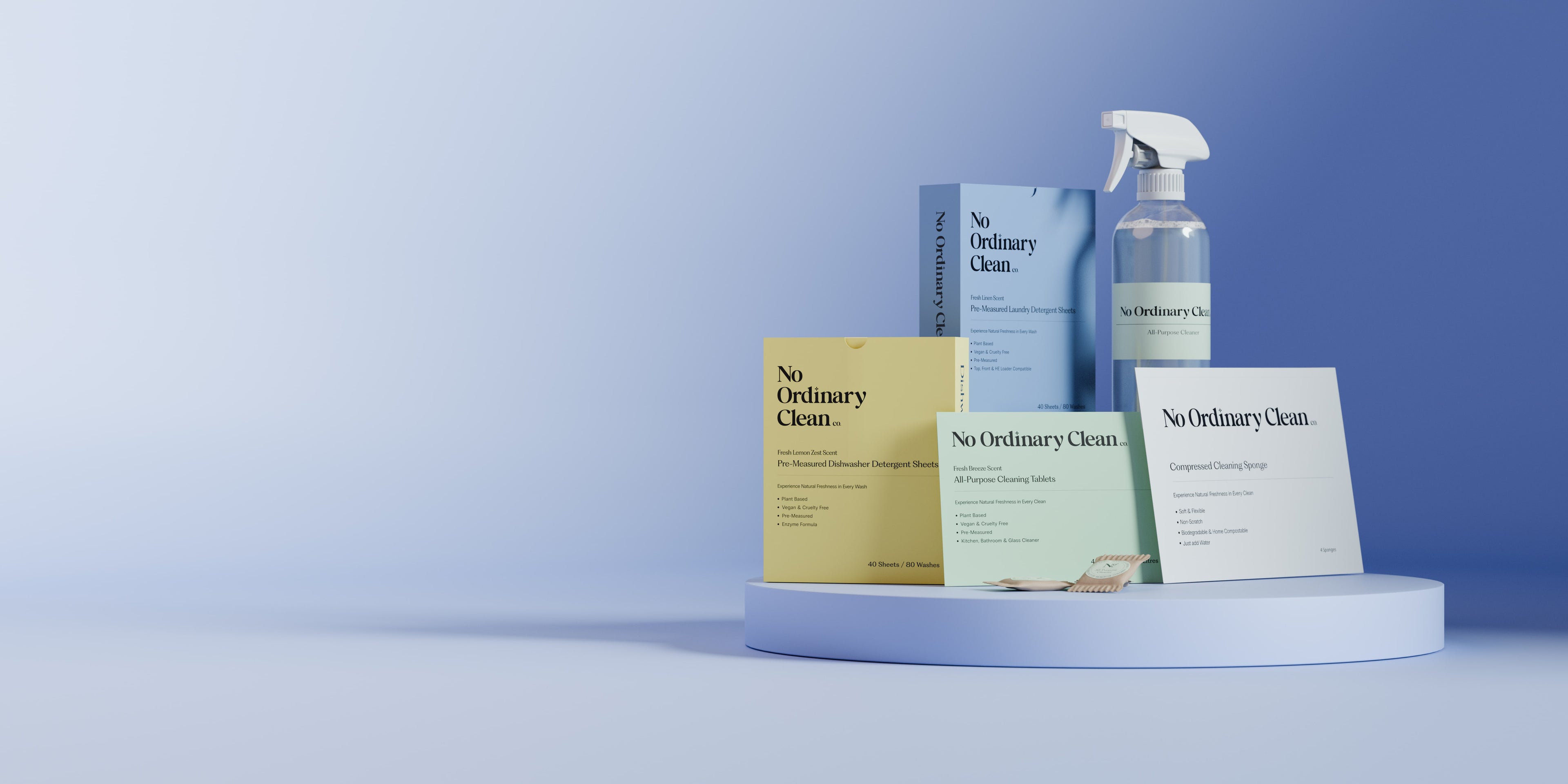 WELCOME TO NO ORDINARY CLEAN CO, WE'RE AN EMERGING ECO-CONSCIOUS BRAND COMMITTED TO ENVIRONMENTAL WELL-BEING AND HOUSEHOLD EFFICIENCY.